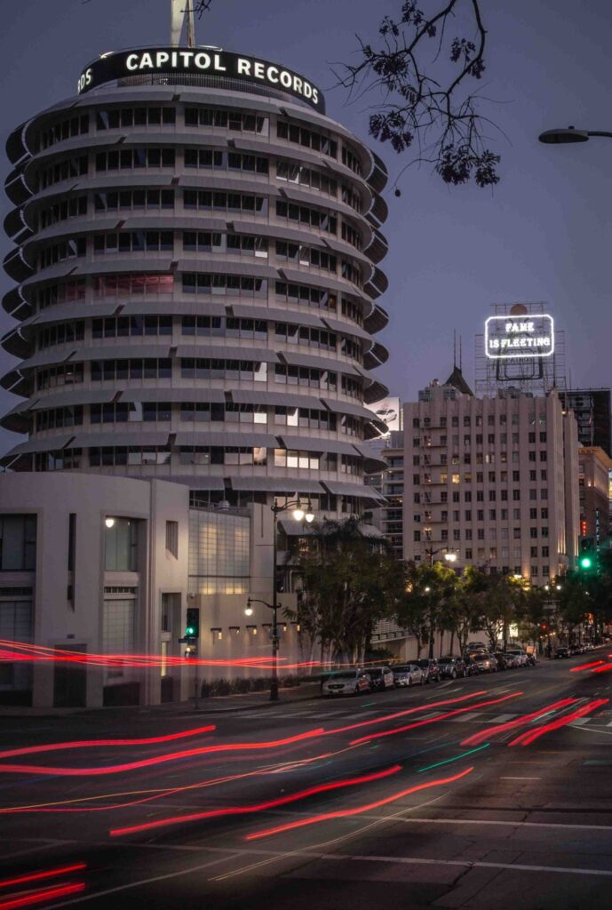 Inside the building lies Capitol Studios, a recording space that has hosted some of the greatest names in music. Frank Sinatra, Nat “King” Cole, The Beach Boys, and Sir Paul McCartney all recorded here, with Sinatra’s Tone Poems of Color being the first album produced in the studio. The facility is famous for its subterranean echo chambers, designed by guitar legend Les Paul, which can produce reverb lasting up to five seconds. This unique sound effect is immortalized in The Beach Boys’ classic Good Vibrations.